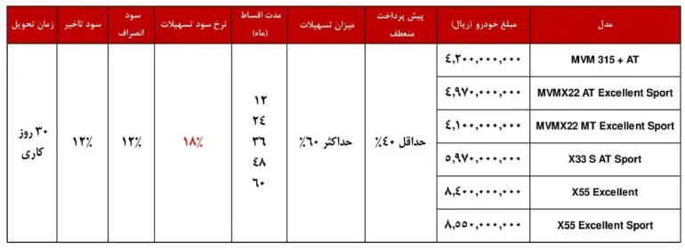 طرح فروش زمستانه محصولات مدیران خودرو با اقساط 60 ماهه برای محصولات ام وی ام و چری آغاز شد.